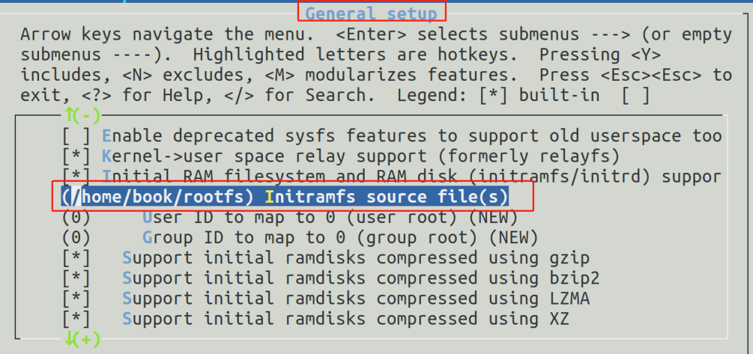 在Initramfs source file(s)选项中,填入文件系统的路径即可。