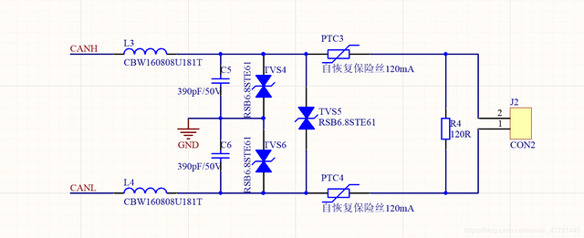 CAN总线是差分信号,两个设备之间使用双绞屏蔽线缆连接,两个线缆分别传输CAN_H和CAN_L信号。