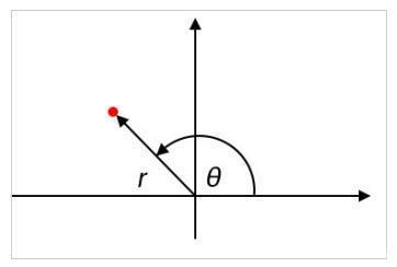 另一方面,极坐标图通过指示幅度和角度来传达信息。大小对应于从原点到曲线上的任何点的径向距离,并且角度是从正水平轴逆时针测量的。在下图中,幅度用r表示,角度用θ表示。