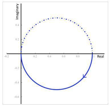 答:记住,曲线从ω= 0延伸到ω=∞,箭头表示频率增加的方向。因此,实线曲线在曲线右侧的ω= 0处开始(在实轴上的值为1)并且在原点处结束,其对应于ω=∞。
