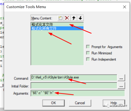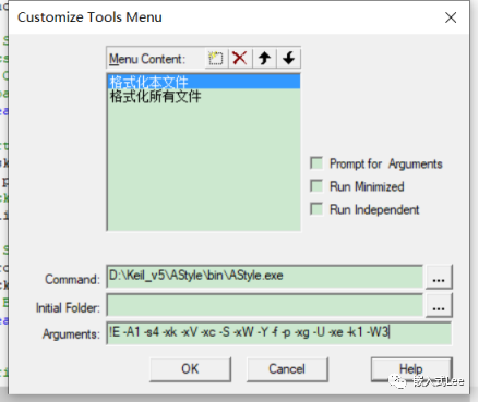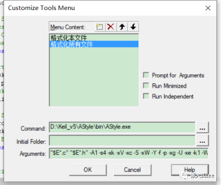 使用的是Astyle默认格式来格式化文件,另外也可以自定义格式,自定义格式参考Astyle的帮助文档。默认格式化后,会备份原文件为源文件名.orig。如果不想让Astyle备份文件,可以使用-n参数。如:-n !E (表示格式化当前文件,不备份)