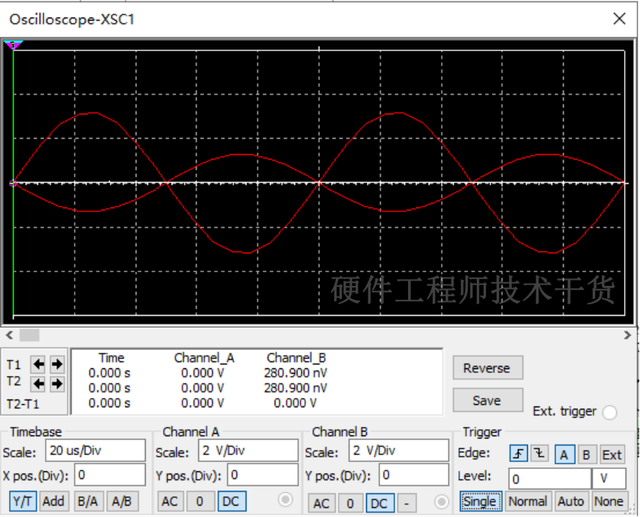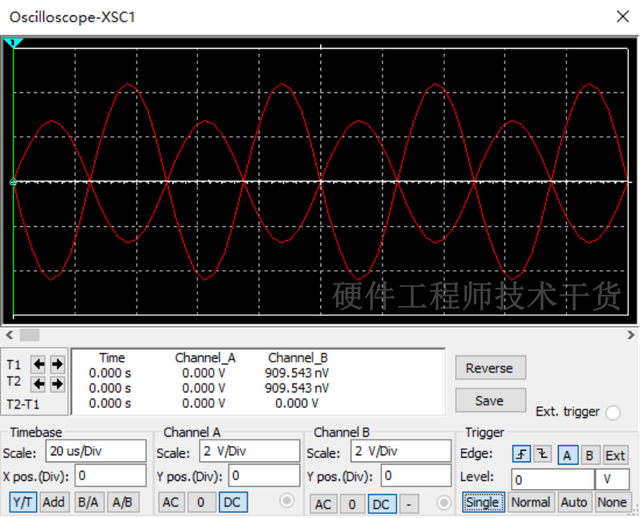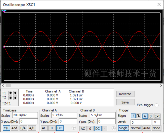 5、XSC2测量电容和电感串联后两端波形