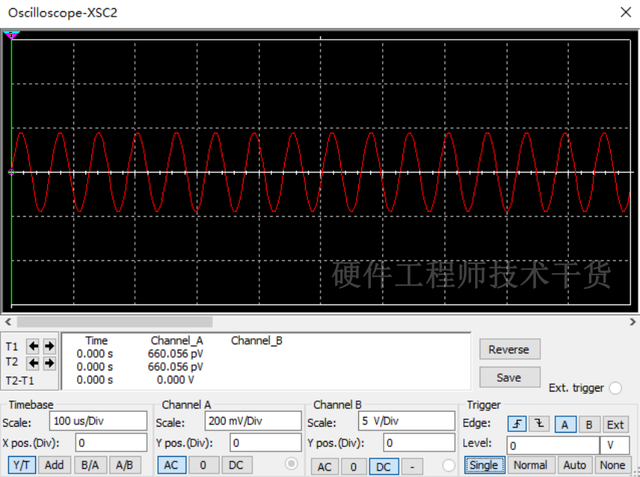 LC串联后两端波形,峰峰值不到400mV,有效值约0.14V很小。