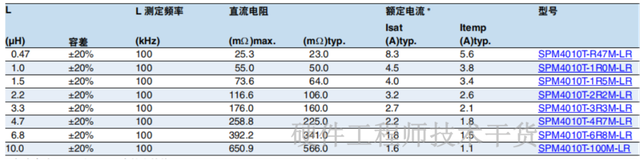 以上是TDK品牌SPM4010系列绕线功率贴片电感参数表,功率贴片电感一般使用在DCDC上。主要参数如下: