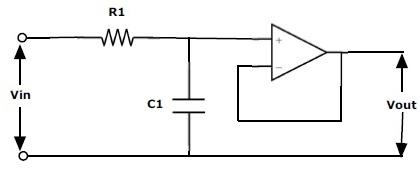 该RC电路将为放大器的输入提供低频路径。放大器用作缓冲电路,提供单位增益输出。该电路具有更多的输入阻抗值。即使运算放大器的输入阻抗高于截止频率,该输入阻抗仍受串联阻抗的限制,串联阻抗等于R+1⁄jωC。