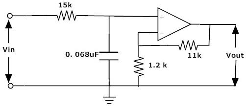 使用运算放大器形成A简单的低通有源滤波器。运算放大器将高阻抗信号作为输入,并提供低阻抗信号作为输出。该滤波电路中的放大器组件将增加输出信号的幅度。