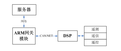 一般遥测、遥信板卡可以支持多达16路电压或者电流信号,考虑到复杂的运算以及实时性一般数据处理单元采用DSP、FPGA作为主处理器。数据单元将处理好的数据再通过CAN总线传给通信单元,一般通信单元采用嵌入式ARM作为处理器。ARM再将数据进一步的安装规约通过以太网进一步的上传到后台的服务器,这样服务器就可以事实的设置以及观察电网的状态