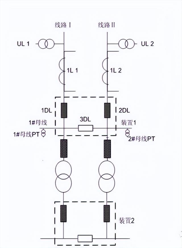 正常运行时,两线路 PT 均有压,两段母线均有压,1DL 和2DL 中的一个开关在合位,另一个在分位,3DL 在合位。