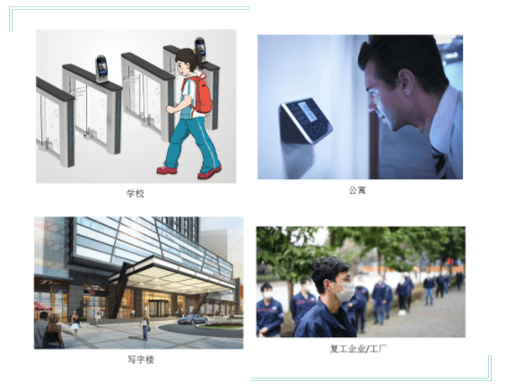 目前,各行各业陆续进入全面复工、学校开学,全国都迎来大规模的人员流动,为接下来的疫情防控带来了诸多的考验。筛查和判别感染人群主要以是否有“发热”作为初步判断,目前公共场所大部分是通过电子体温枪对进出人员进行一对一体温检测,虽然数据准确但是速度有些慢,包括传统的指纹打卡都容易引发人群拥堵且会产生近距离接触,增加互相聚集形成交叉性传染的风险。