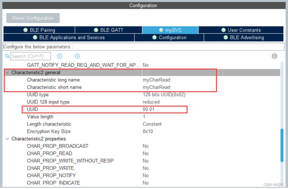 定义第二个特征名称,这里定义为'myCharRead',同时将UUID增加为00 01