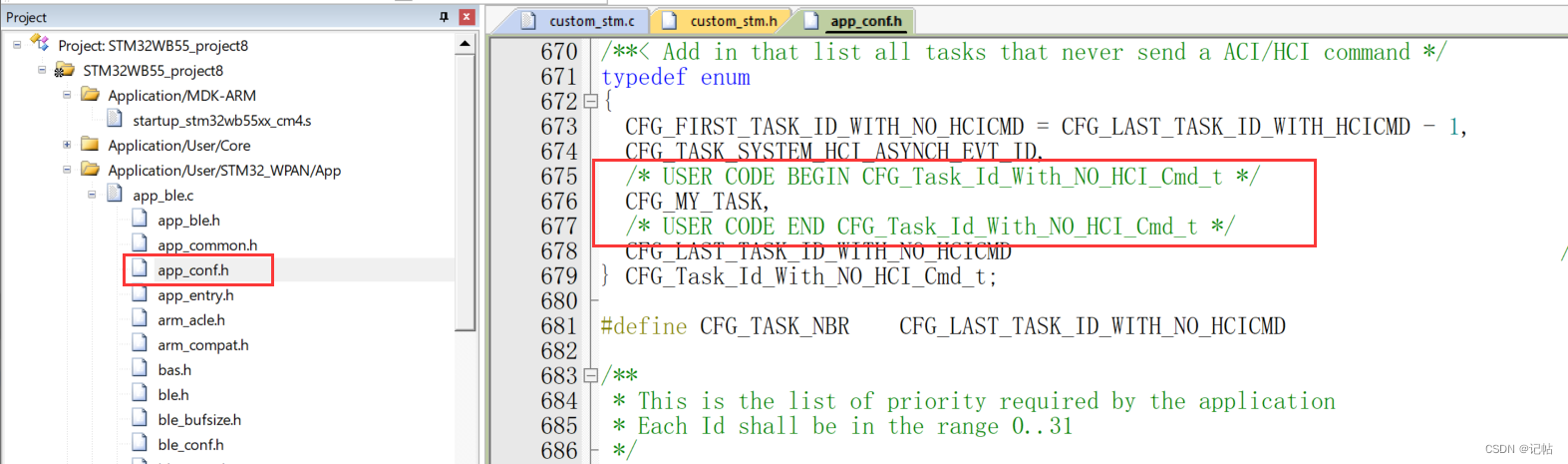 在app_conf.h中定义自定义任务。