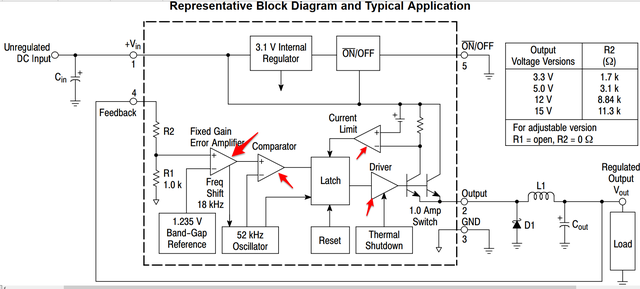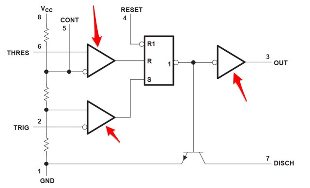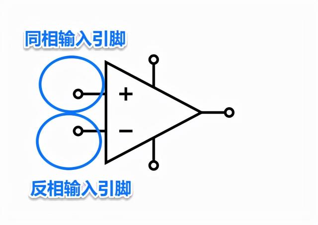 标有**+** 的是同相输入(Non-inverting input)引脚, 标有**-** 的是反相输入(Inverting input)引脚: