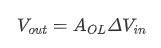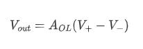 我们用 V+ 表示同相输入信号,用 V- 表示反相输入信号,用 AOL 表示运放的开环增益,用 Vout 表示输出信号。则输出信号与输入信号的关系可用下面的方程式表示: