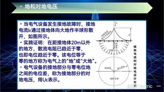 通过测试可知在距接地体20米以外的地方,球面已经相当大,散流电阻已趋近于零,也就是电位趋近于零。所以把电位等于零的地方称为电气上的“地”或“大地”。