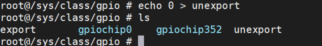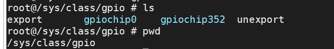 可以看到该目录下包含两个文件 export、unexport以及2个gpiochipX(X 等于 0、 352)命名的文件夹。