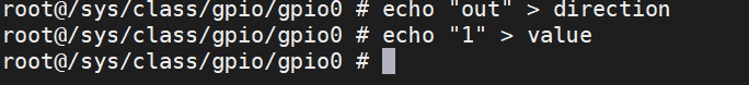 输出模式下,向 value 文件写入"0"控制 GPIO 引脚输出低电平,写入"1"则控制 GPIO 引脚输出高电平;
