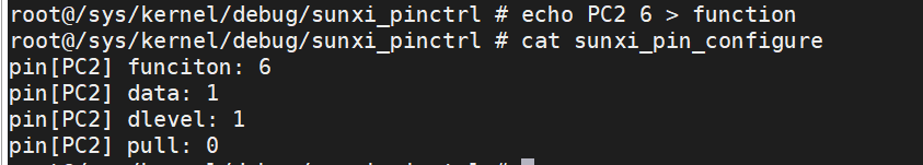 echo PC2 1 > pull cat sunxi_pin_configure //查看修改情况