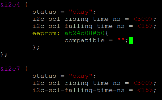 按照思路,首先要在设备树I2C4节点下添加at24c08的设备信息。在kernel/arch/arm64/boot/dts/rockchip/OK3399-C.dts文件,找到I2C4节点如下: