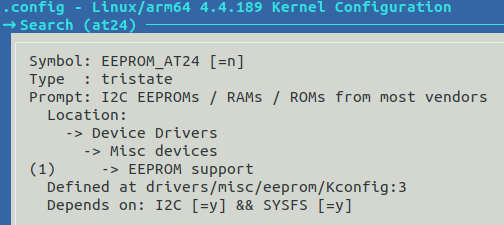 在kernel目录下运行makemenuconfig,搜索at24,如下: