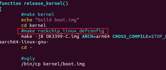 因为makemenuconfig修改的是.config文件,而编译脚本中每次都会重新生成.config文件,所以为了让修改生效,修改编译脚本,使其不重新生成.config文件,如下: