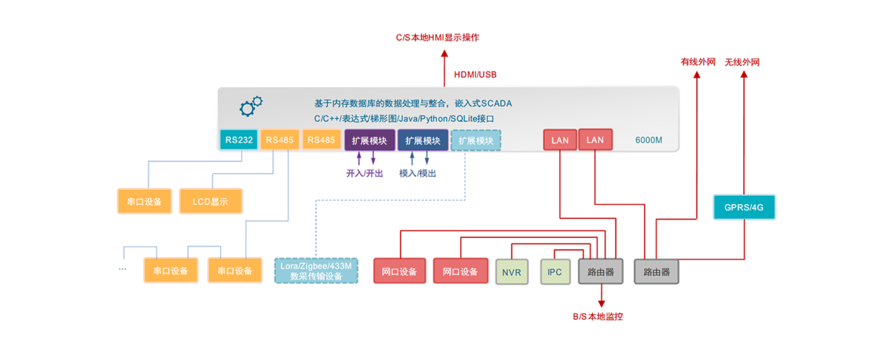 协议与边缘计算功能二次开发能力,支持C/表达式/梯形图/Java/Python应用编程;