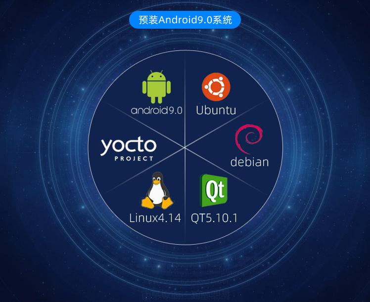 Android9.0系统、Linux4.14.78 + Qt5.10.1系统、Yocto系统、Ubuntu20系统、Debian9系统。