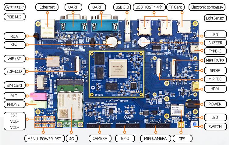 迅为iTOP-3399 开发板平台均由核心板和底板构成,核心板的主要芯片有 CPU,内存,EMMC,电源管理, EEPROM 等,并且核心板兼容同一底板,使用我们的核心板以及操作系统,您只需要根据您的业务需求来开 发自己的底板和应用程序即可,让您从复杂的平台搭建的环境中脱离,加速您产品上线的时间。