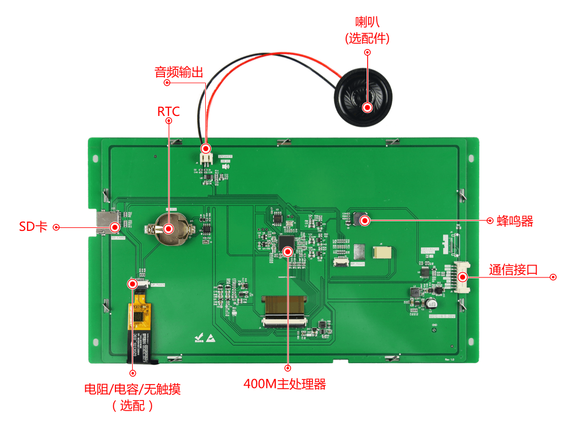 3)支持JPEG图片压缩、MP3音频、GIF动画播放;4)支持多种组态控件:按钮控件、文本控件、下拉控件、进度条控件、仪表控件、曲线控件、滑块控件、选择控件、图标控件、动画控件、数据记录、音频、RTC控件和二维码控件等;5) 支持全球任意国家语言,仅需1套美工UI,一键切换语言;6) 支持LUA脚本编程,屏内部运行逻辑和算法,减少通讯频率;7) 通过临床医用所需的EMI辐射、高低温、微波干扰、线圈干扰、群脉冲等多项严酷测试;8) 功耗低,背光最暗模式,处理器全速运行下在0.4W左右,休眠模式可达0.17W左右;9) 支持图片、固件的远程升级、增量升级、运行中升级等多种模式;