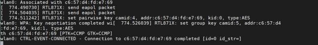 一切准备好以后,使用命令 wpa_supplicant -D wext -c /etc/wpa_supplicant.conf -i wlan0 &连接 wifi连接成功会出现以下打印: