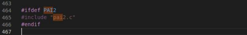 在 Targets/LS2K/ls2k/tgt_machdep.c 文件的第 464 行使用了宏定义 PAI2 来决定包不包含 pai2.c 文件,如下图所示: