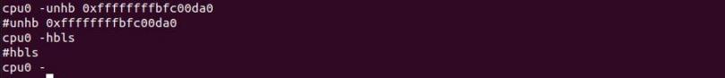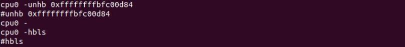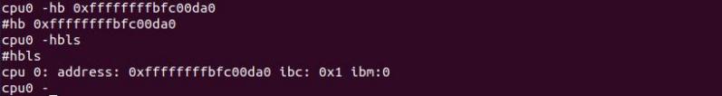 所以我们输入命令 hb 0xffffffffbfc00da0 将断点打在这个位置下,如下图所示: