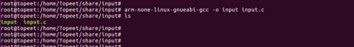 开发板上电开机,然后使用 nfs,或者 U 盘将 input 程序拷贝到开发板,如下图所示: