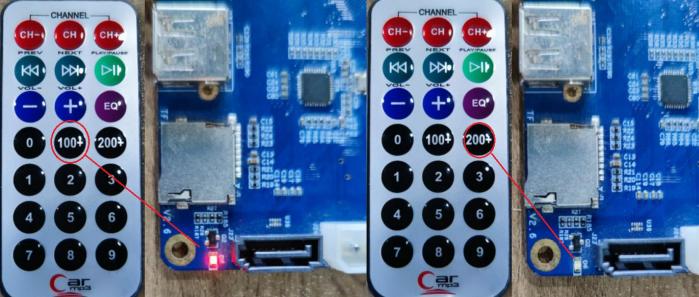 根据提示将遥控器对准红外接收头 hs0038 按下遥控器上的‘