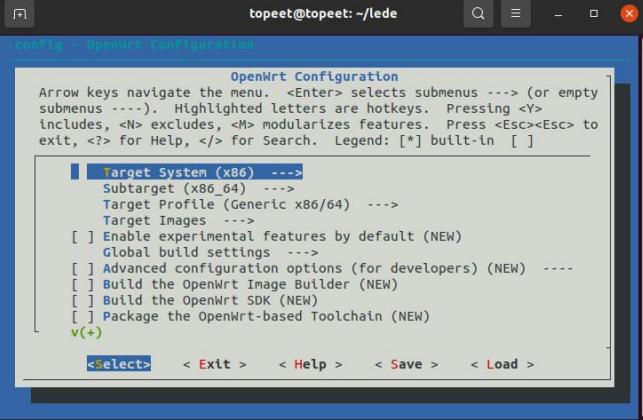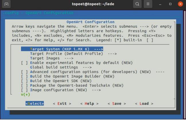 安装扩展完成后。输入命令“make menuconfig”,进入可视化界面进行配置,如下图所示: