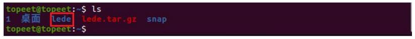 编译环境搭完成后,使用命令 git clone https://github.com/coolsnowwolf/lede,对 lede 大神的源码进行克隆拉取,拉取完成会在当前目录下产生名字为 lede 的文件夹如下图所示: