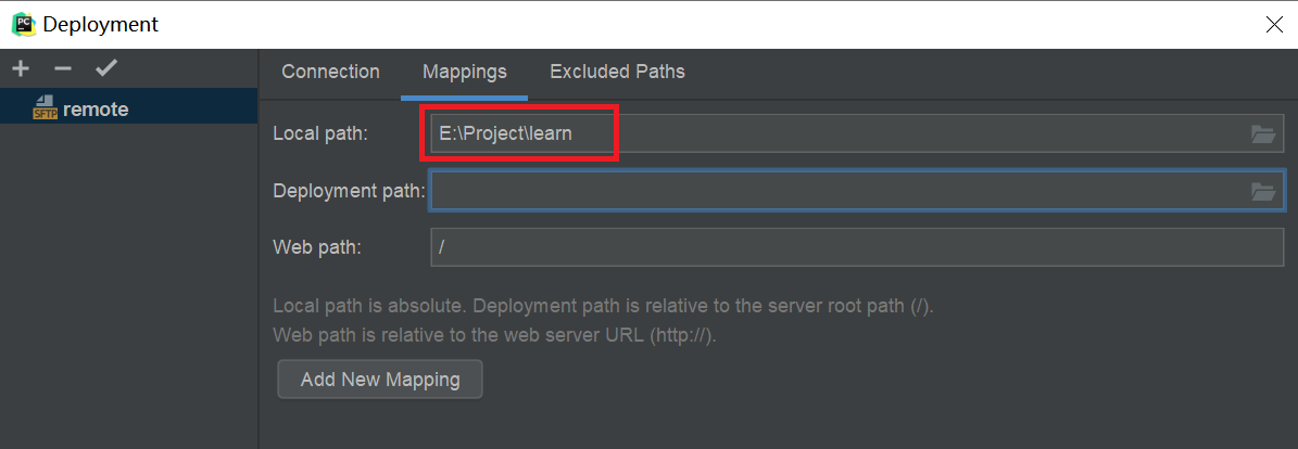 选择代码存放地址,我本地的地址是E:/project/learn,服务器上的地址是/app/learn;