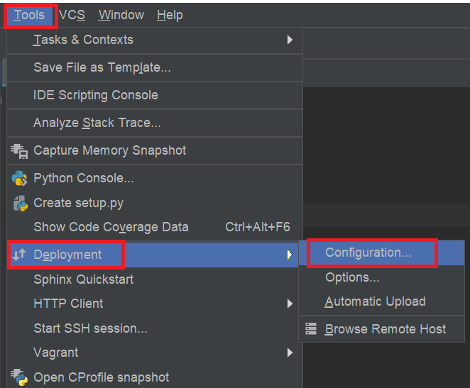 点击菜单栏Tools——Deployment——Configuration