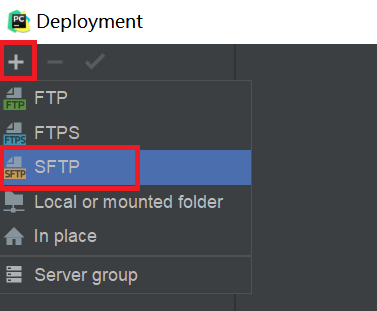 点“+”,新建一个SFTP类型的Deployment配置: