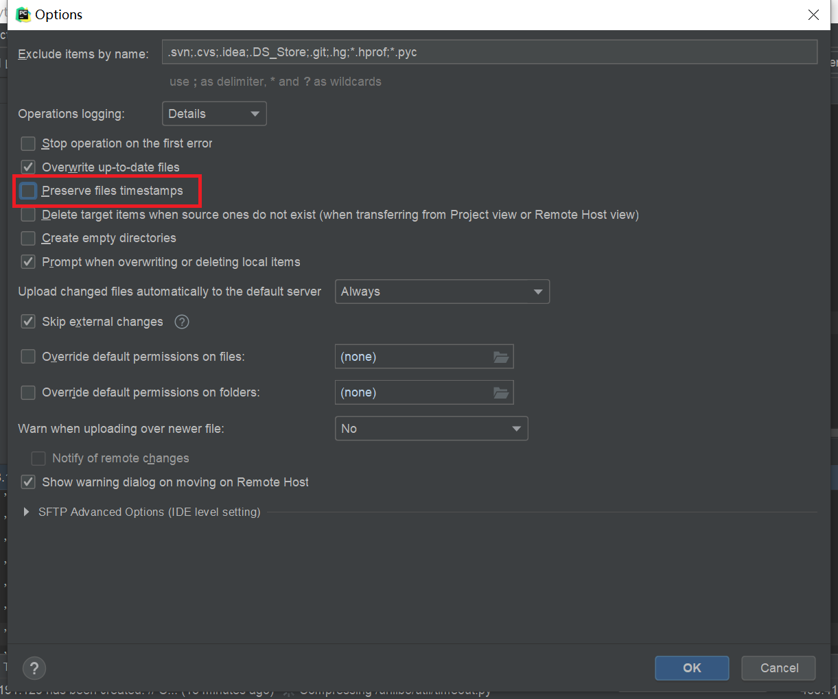 选择菜单栏Tool——Deployment——Options,取消选中Preferve files timestamps: