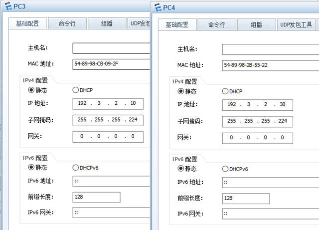 下面有三个地址,我们先把PC地址和子网掩码设置好,做个测试: