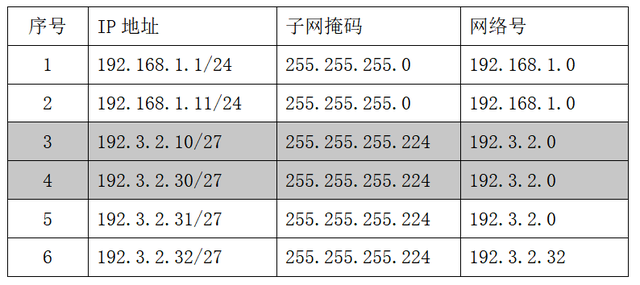 看出来了吧,只有第三组,他们的网络号不同,所以他们不在同一地址段中。