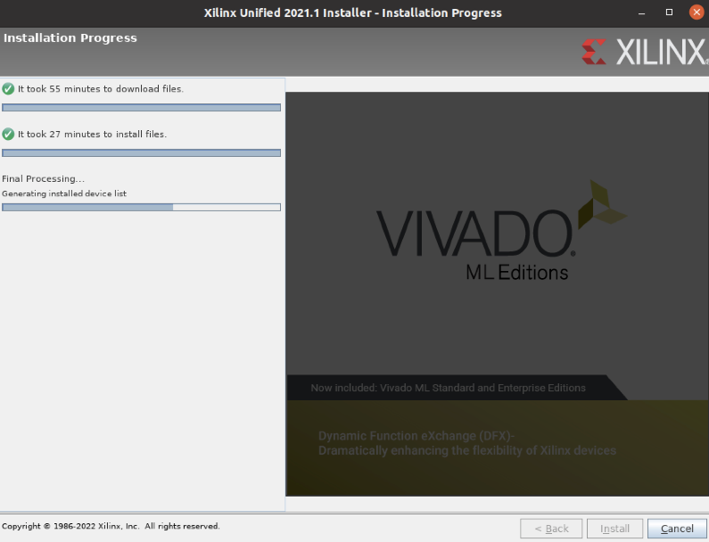 https://support.xilinx.com/s/question/0D52E00006iHjbcSAC/vivado-20211-installation-hangs-at-generating-installed-device-list?language=en_US