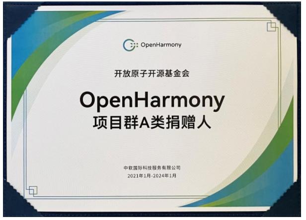 ▲OpenHarmony项目群A类捐赠人证书