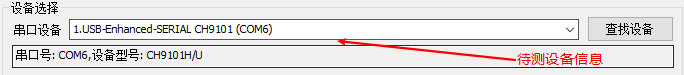 此区域显示待测设备信息,如串口号、设备型号信息。