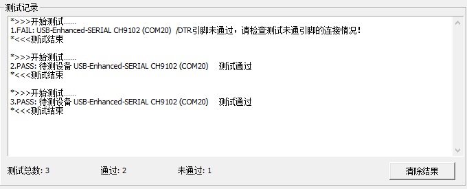测试完成会在“测试结果”区域相应的测试引脚上方会显示结果: