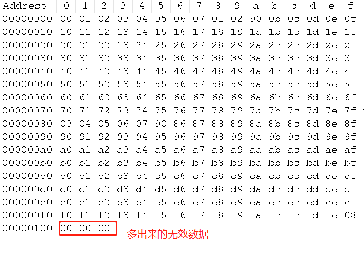 下面我举一个例子,BIN文件的写,从0写到255,256个byte。
