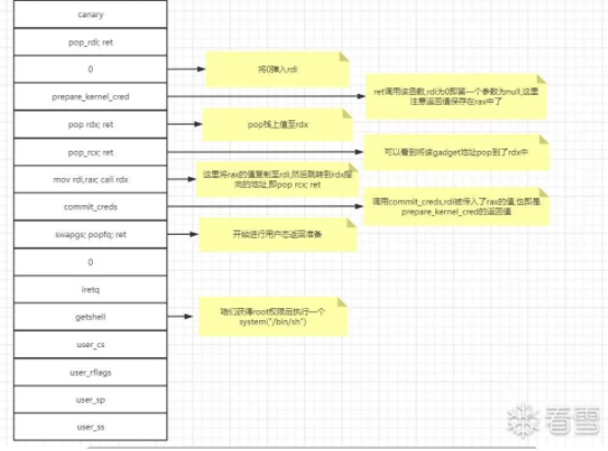 虽然咱们的提权是在内核态当中,但我们最终还是需要返回用户态来得到一个root权限的shell,所以当我们进行栈溢出rop之后还需要利用swapgs等保存在内核栈上的寄存器值返回到应得的位置,但是如何保证返回的时候不出错呢?