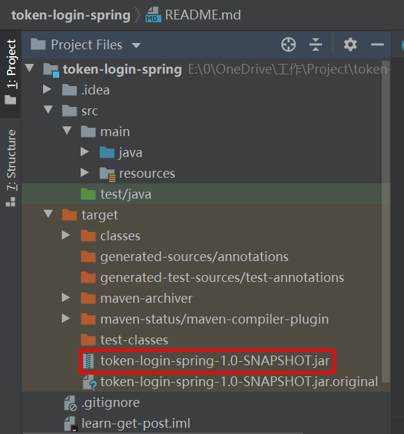 此时在工程下生成了 target 文件夹,里面有我们的 jar 包: