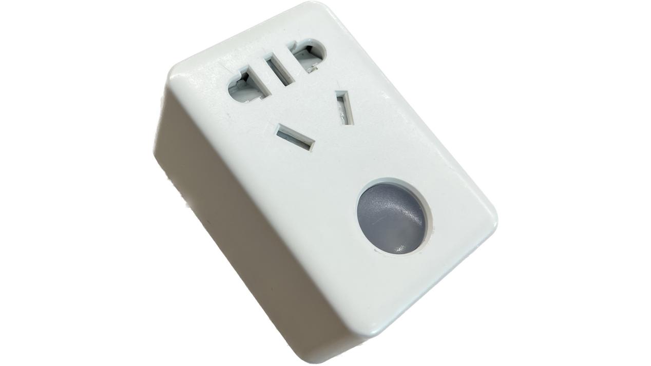 插座的正面采用了2+3的5孔插座设计,可使用不同用电设备的取电需求。在插孔的下方,是一颗半透明状的多功能复用按键,这颗按键不仅可以通过长按的方式,配置设备网络,在断网状态下,还可以当作控制设备通断电的开关使用。