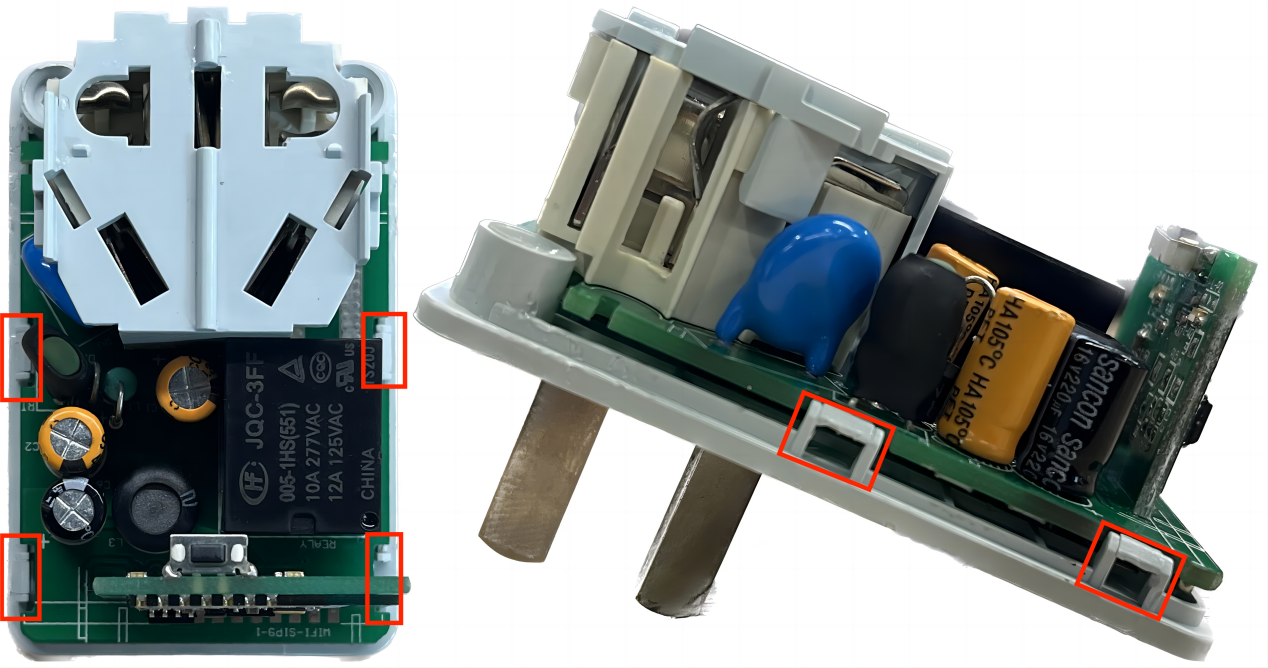 除去顶部用于固定了两颗螺丝之外,插座的中部及下部均通过卡扣进行固定。
